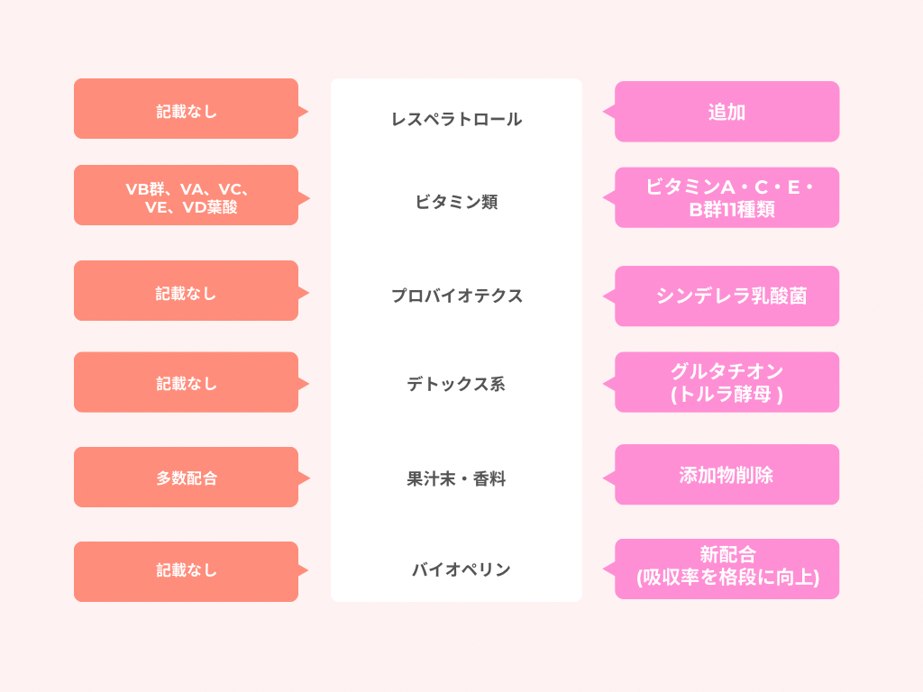 皆さまにより大きな変化を感じていただくため、配合成分をゼロから見直しました。
